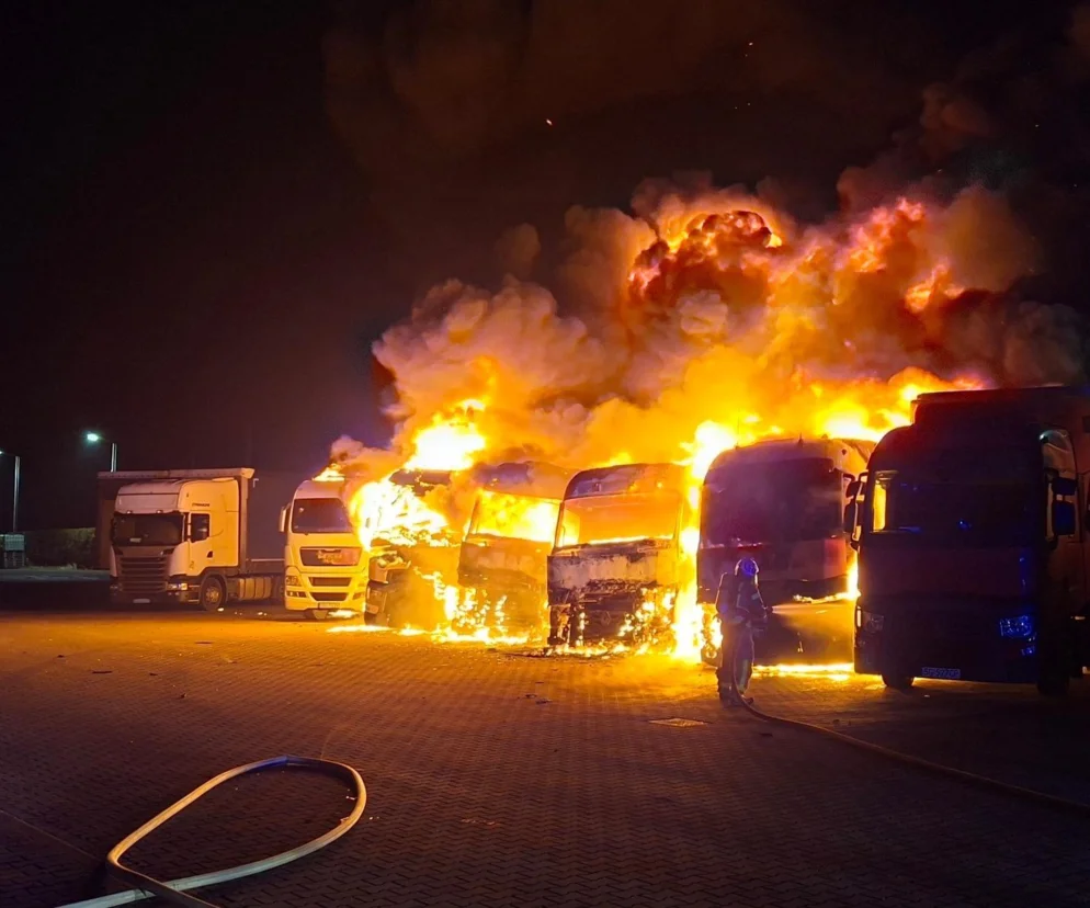 Okazało się, że doszło do rozwiniętego pożaru kilku ciągników siodłowych wraz z naczepami. Zagrożonych było także kilka kolejnych pojazdów zaparkowanych w pobliżu. Ze względu na skalę zagrożenia, na miejsce natychmiast zadysponowano dodatkowe siły i środki z całego regionu.